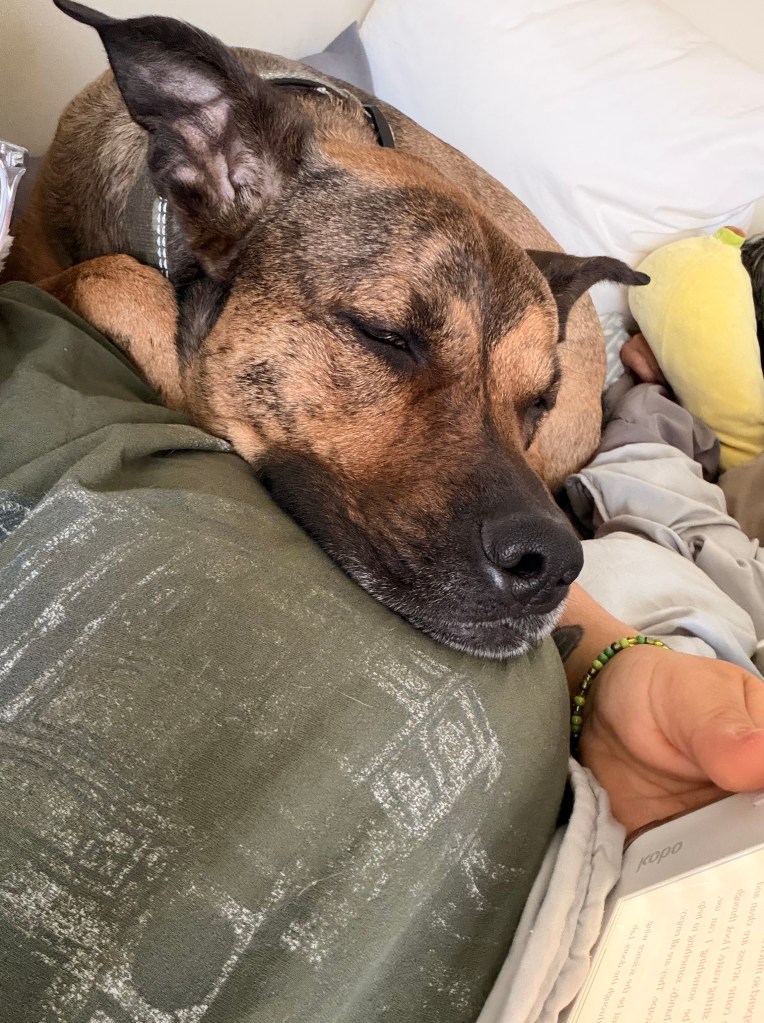 Here is a picture of my chili dog sleeping on my chest while i read.